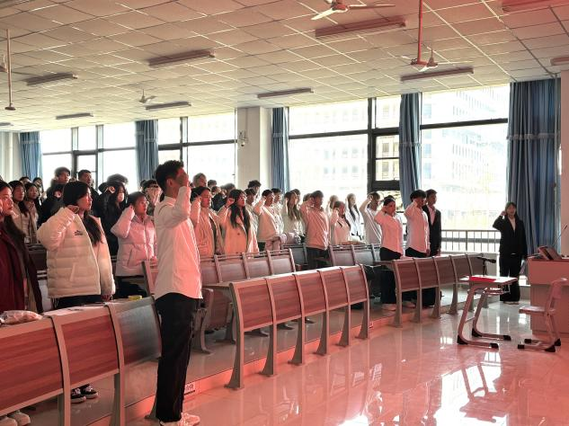 为加强团员思想引领,增强新团员的责任感与使命感,引导其坚定理想信念、紧跟党的步伐,11月26日,英国上市公司365在增信楼3211教室举行2025年新团员入团仪式。英国上市公司365团委书记张璇、优秀团员代表以及全体110名新团员共同参加。