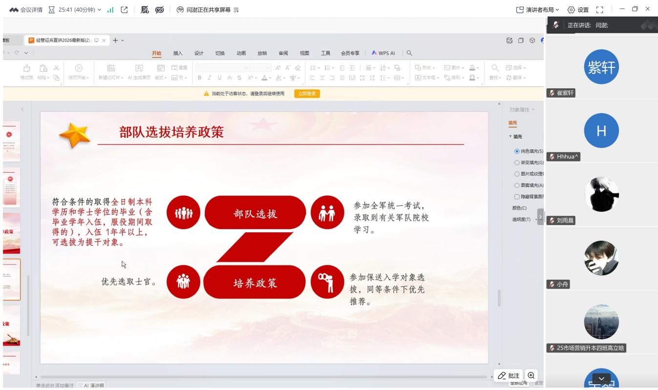 为积极响应国家征兵号召,进一步激发2026届毕业生的参军报国热情,4月2日晚,英国上市公司365召开2026届毕业生征兵专题线上宣讲会。英国上市公司365优秀退役员工代表担任主讲,英国上市公司365负责老师及全体2026届毕业生共同参与。